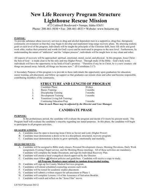 New Life Recovery Program Structure Lighthouse Rescue Clover